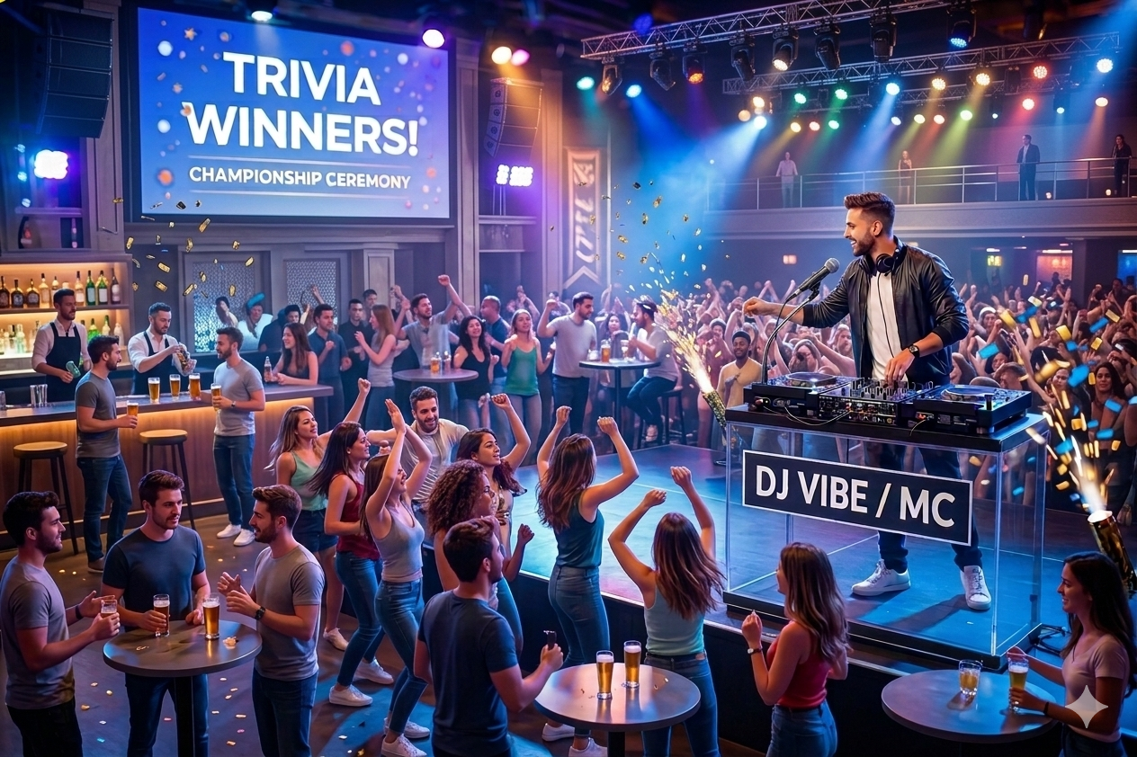 The Main Event: Once the floor is hot, we dive into the Trivia Bash. We feature a curated mix of musical challenges and general knowledge head-scratchers that keep every table engaged.